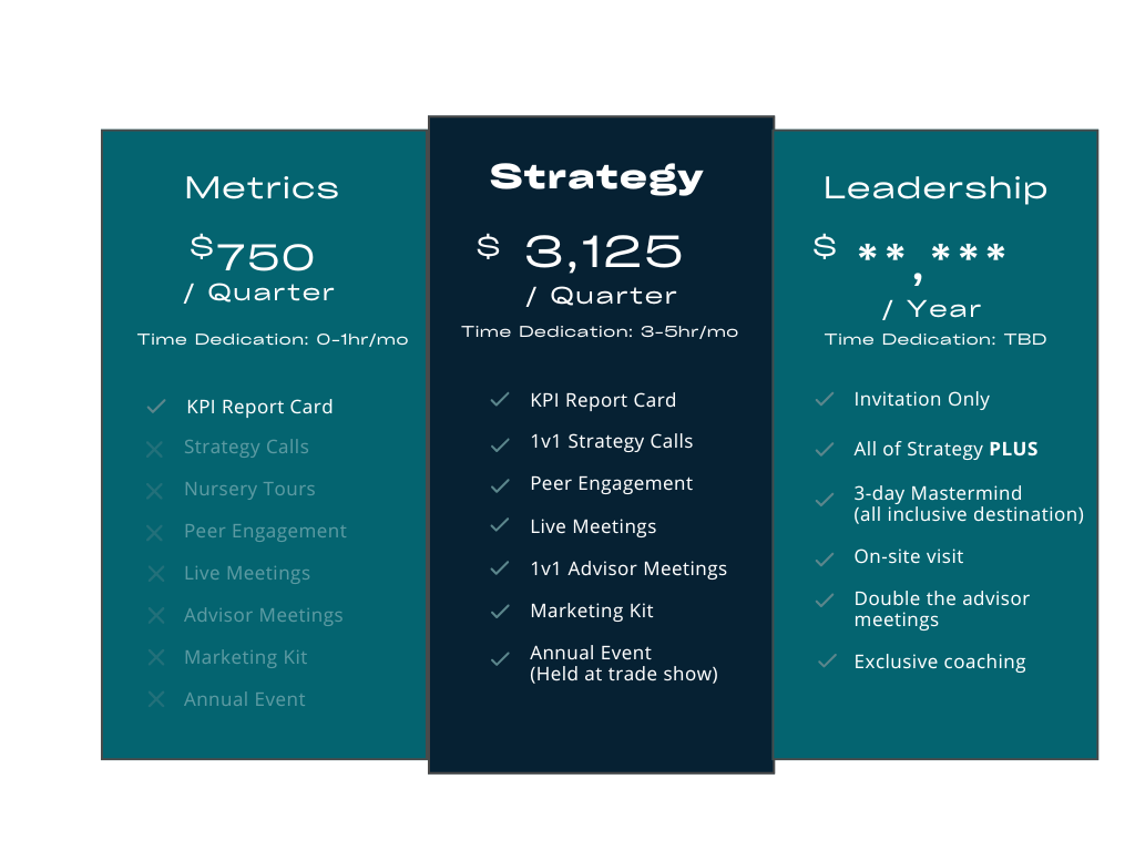 Gain direct access to experts in key business domains, providing insights tailored to the unique dynamics of production nurseries. Stay ahead of industry shifts with guidance in workforce management, exit strategy, strategic growth, marketing, e-commerce, and effective leadership.