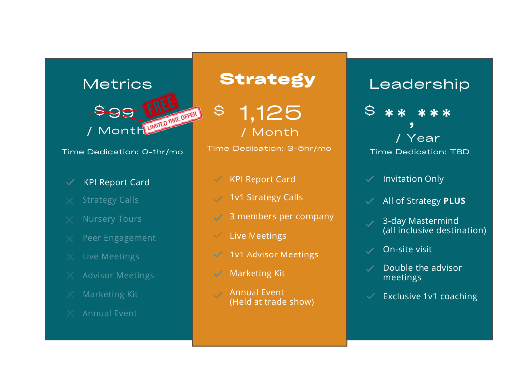 The Next Level Nursery Group is your trusted partner for navigating the challenges and opportunities of the green industry. Designed exclusively for production nurseries, this collaborative community brings together industry leaders, guided by a dedicated advisory board of seasoned professionals in HR, Strategy, Marketing, and Leadership—all with deep roots in the green industry.